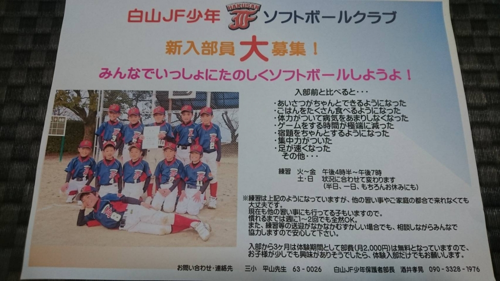白山JF少年ソフトボールクラブ 部員大募集中!